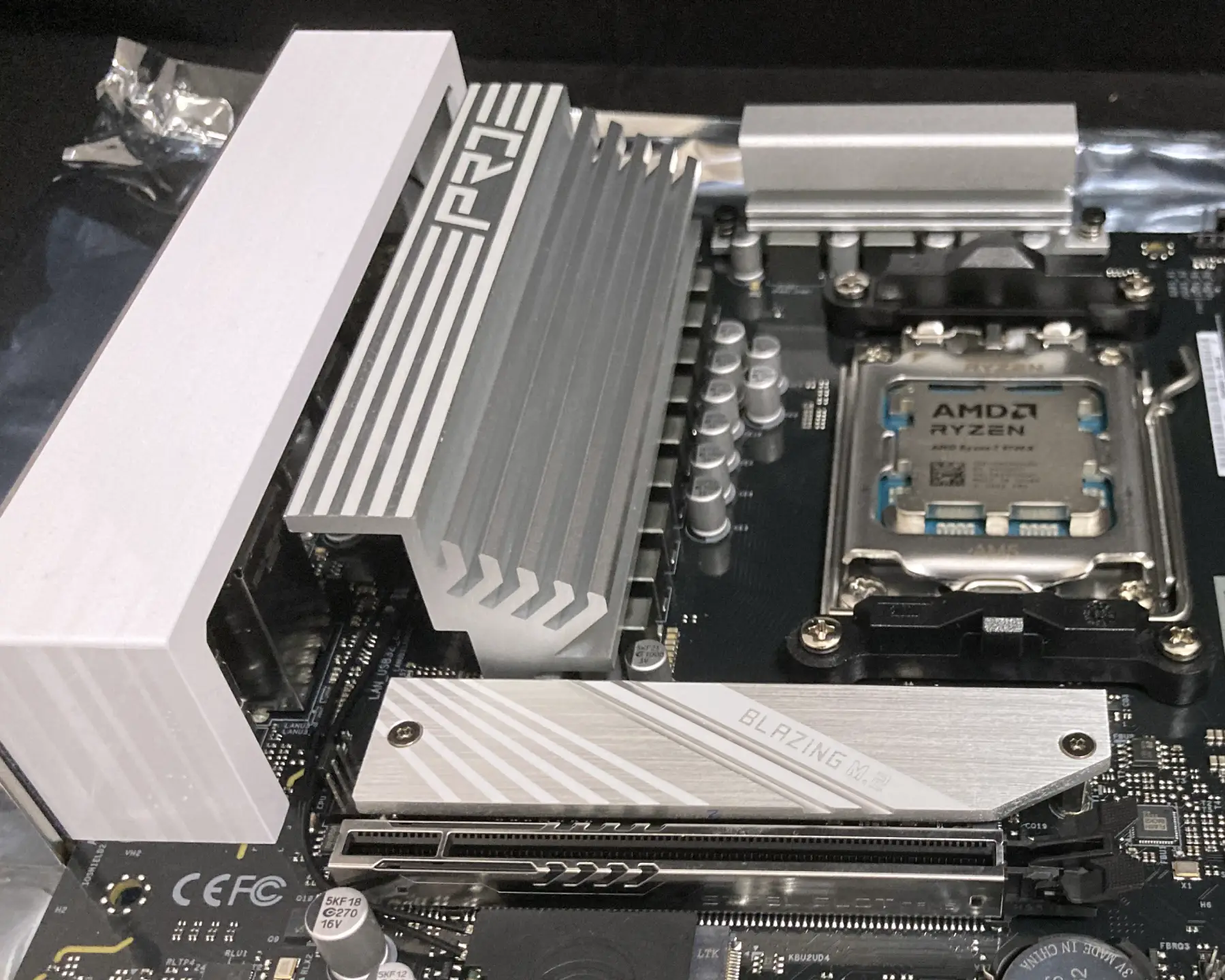 PCI Express Gen5対応スロットにM.2 SSDをセットしなおして、ヒートシンクをかぶせました。